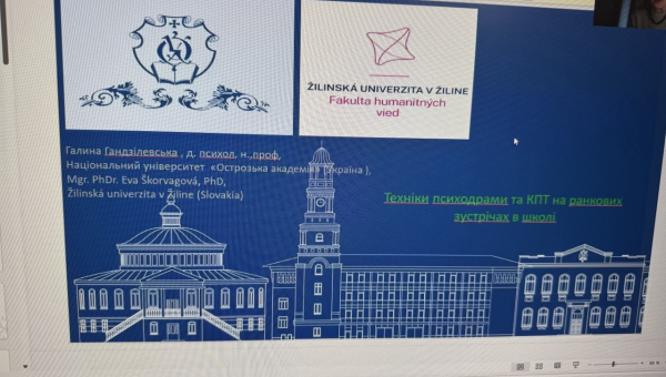 04 грудня на кафедрі психології пройшла гостьова бінарна лекція д. психол. н., професора Галини ГАНДЗІЛЕВСЬКОЇ (м. Острог) та PhD в психології, доцента Єви ШКВОРВАГОВОЇ (Словаччина) на тему: "Тех...